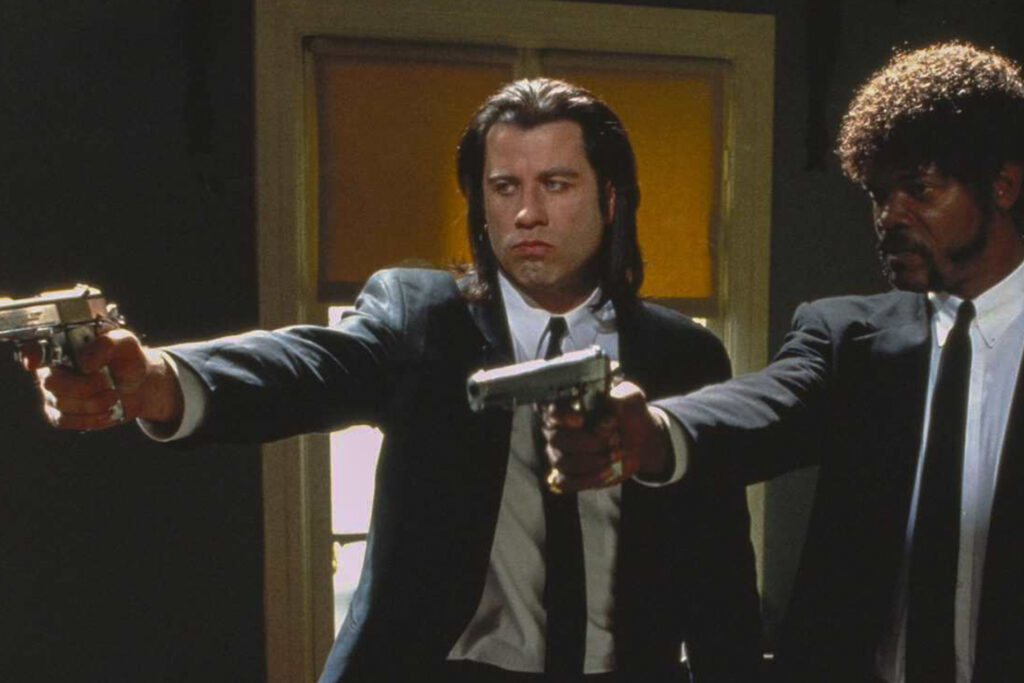 Jules (Samuel L. Jackson) y Vincent (John Travolta) son dos asesinos a sueldo que trabajan para Marsellus (Ving Rhames). Éste debe ausentarse, y encarga a Vincent que cuide de Mia (Uma Thurman), su atractiva mujer. Un difícil compromiso, ya que el anterior hombre que desempeñó esa tarea fue liquidado por Marsellus. Pulp Fiction / Quentin Tarantino